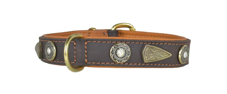 Hochwertig genähte Halsbänder aus geschmeidigenbraunem Fettleder,