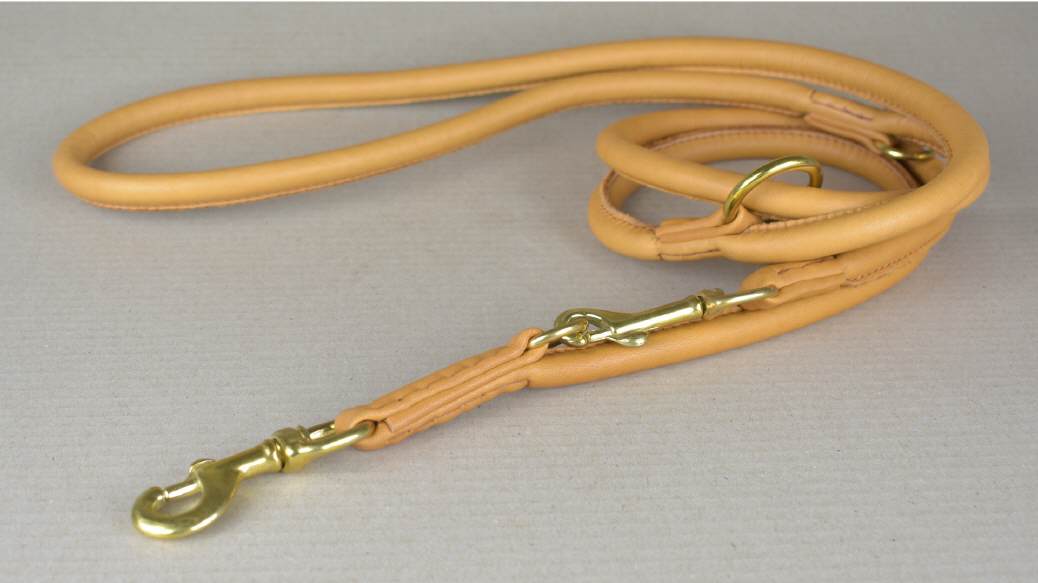 Die verstellbare Führleine ist aus einem Kalbsnappaleder