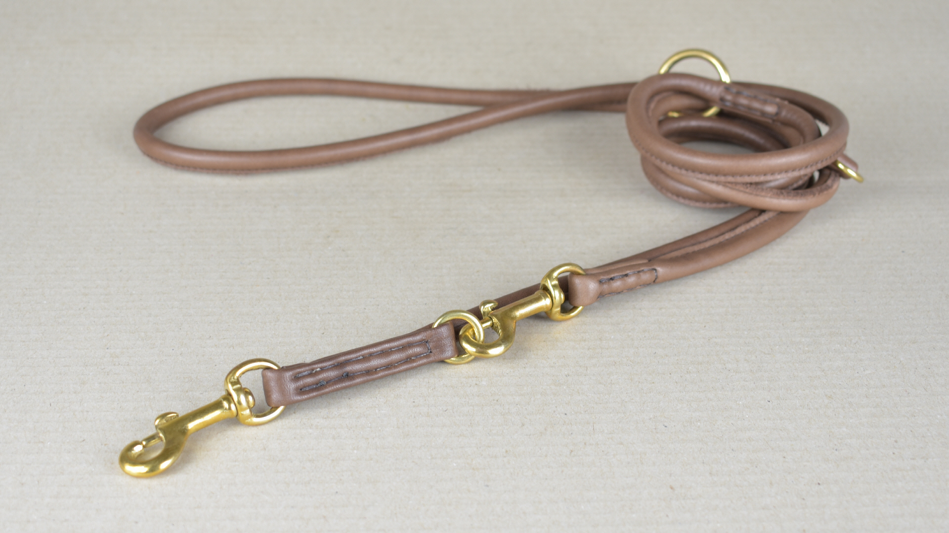 Die verstellbare Führleine ist aus einem Kalbsnappaleder