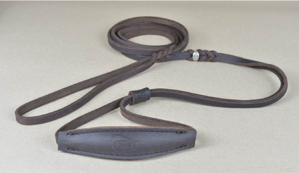 Diese Schauleine aus Fettleder ist mit einem Kehlkopfschutz