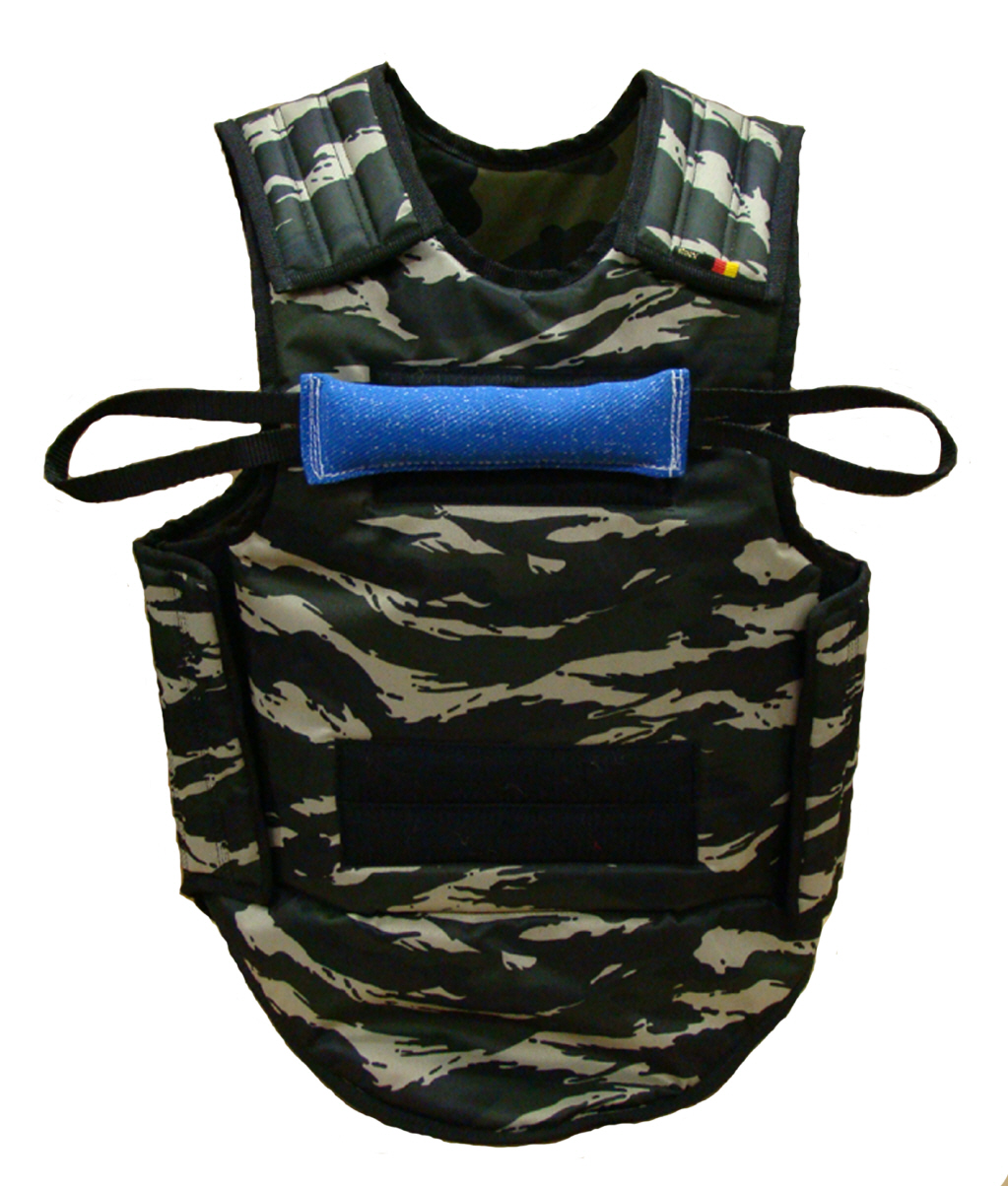 Die durch Klettband fixierte Beißwulst bietet Griffmöglichkeiten im Brust-, Bauch-, Schulter- und Kreuzbereich.