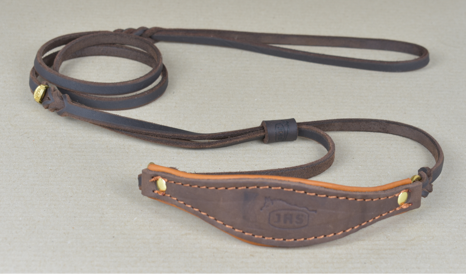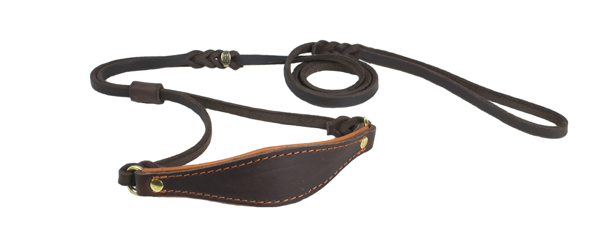 Schauleine aus Fettleder mit Kehlkopfschutz.